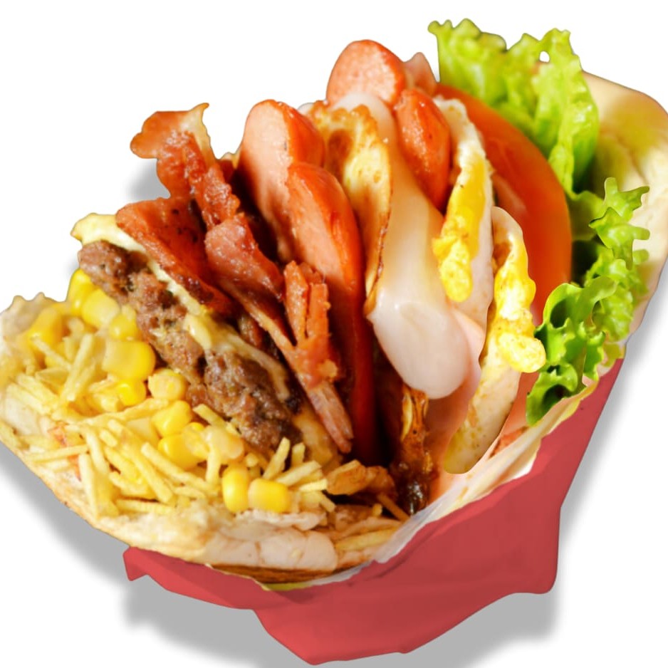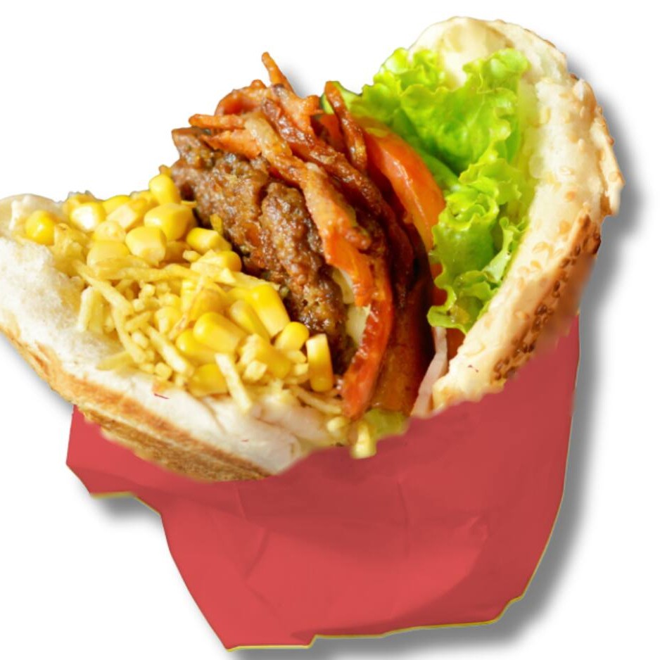 Pão Big, escolha 2 Carnes, Mussarela, Apresuntado, Alface, tomate, Abacaxi, Milho e Batata.
