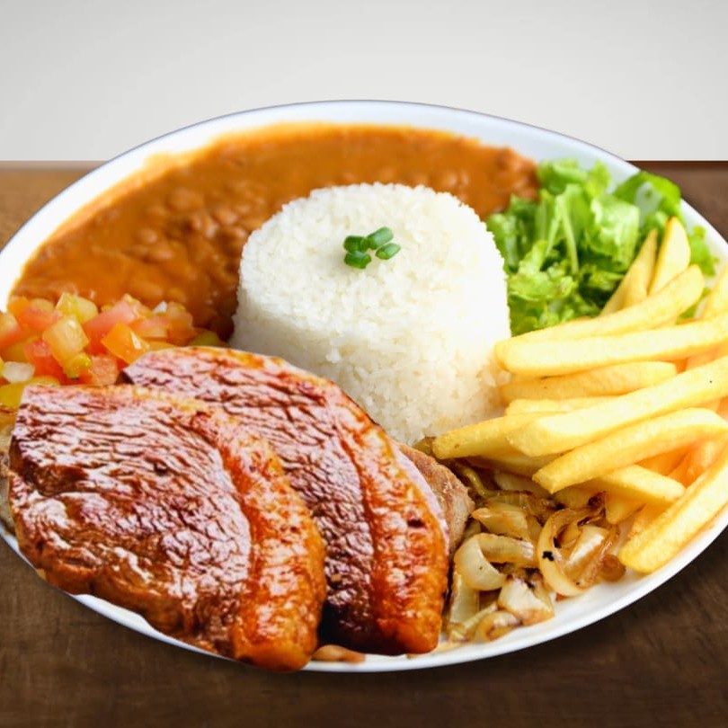 Delicioso Prato Executivo Feito com: -Picanha na Chapa(2 Peças 200g aproximadamente) -Arroz -Feijao -Salada c/vinagrete -Batata Frita
