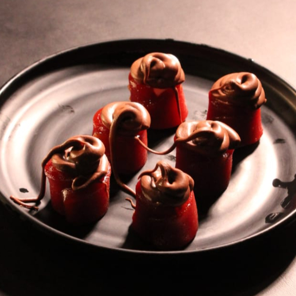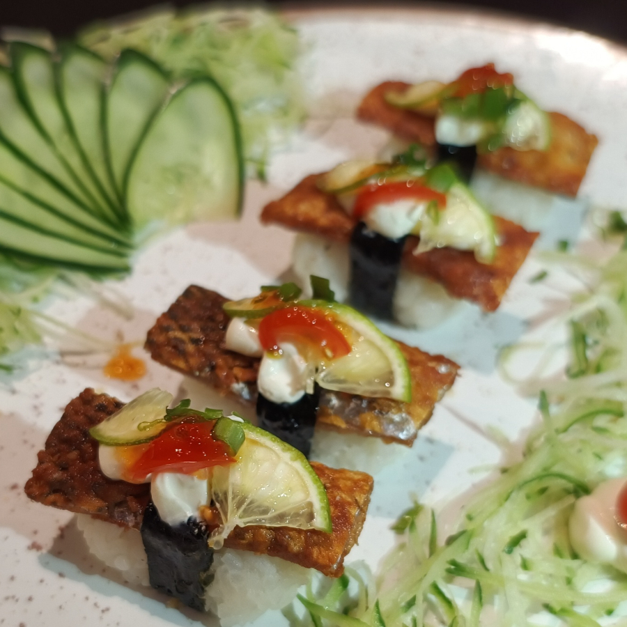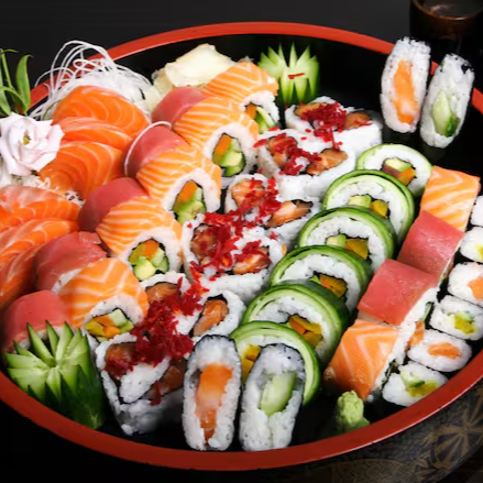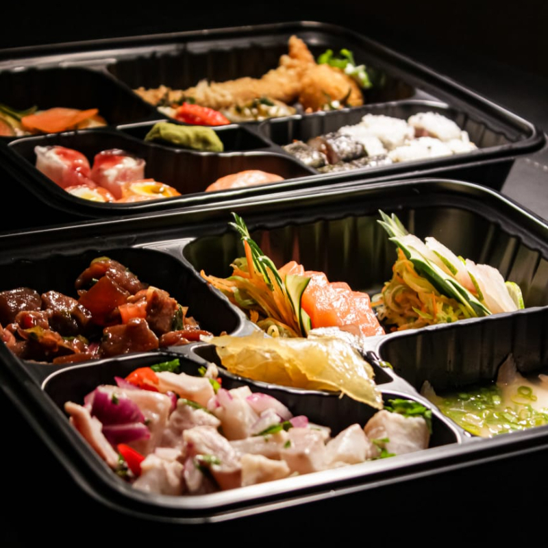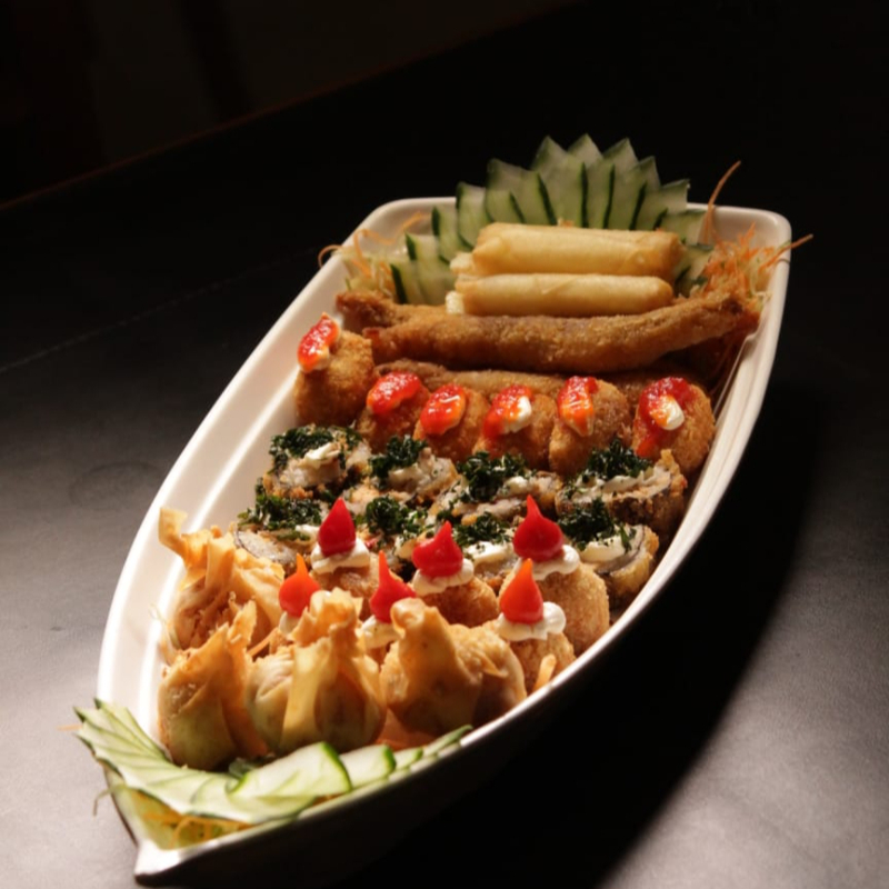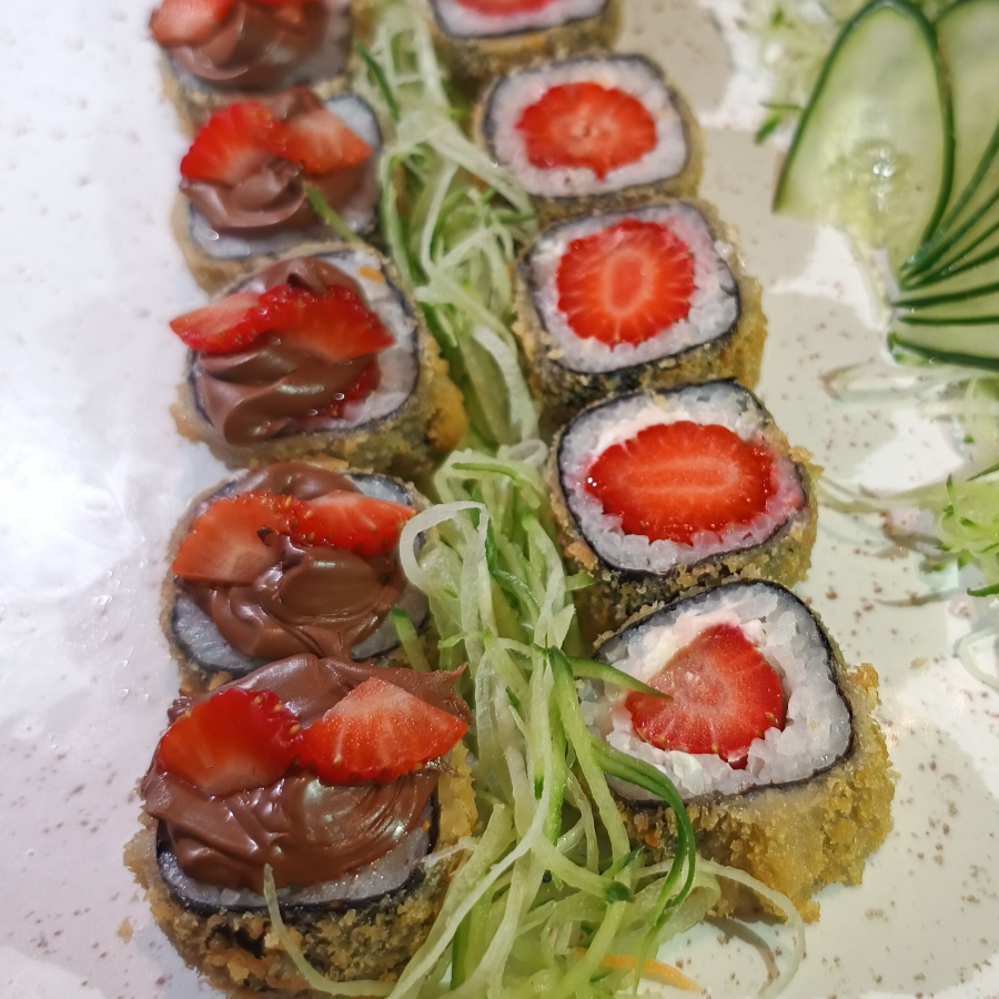 10 Hot´s, 20 Sushis variados, 2 Gunkans Salmão geleia de maracujá, 2 Gunkans Tilapia geleia de Morango.