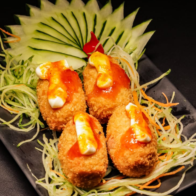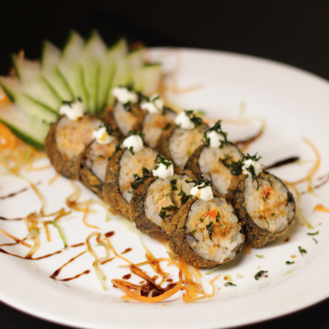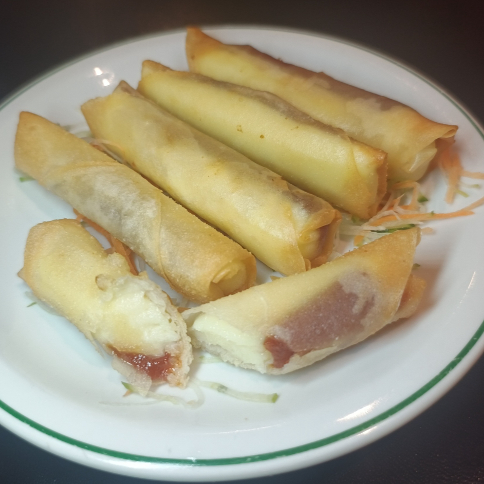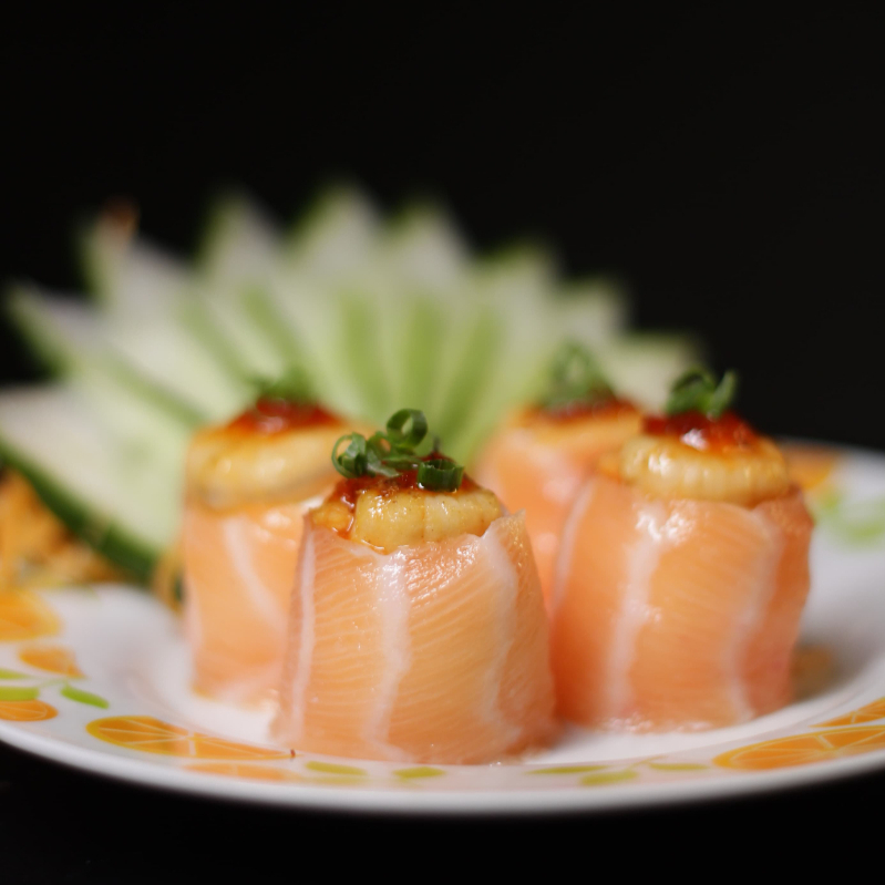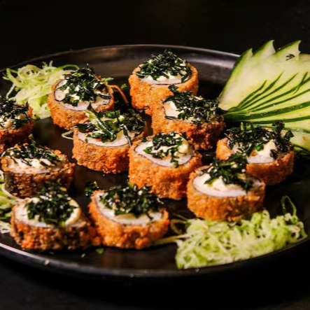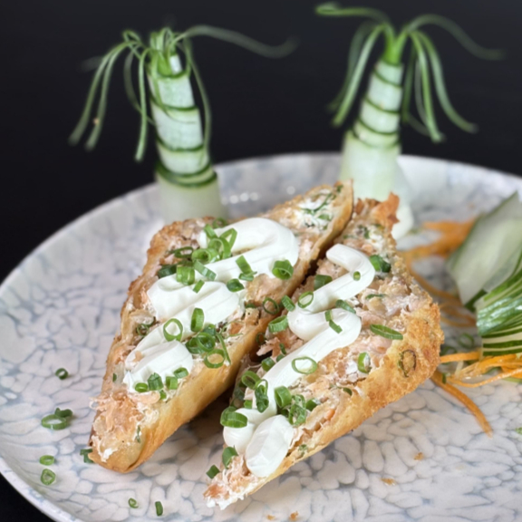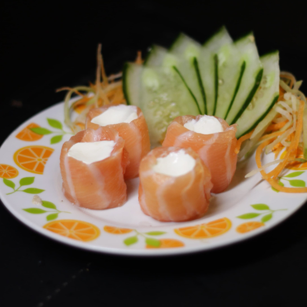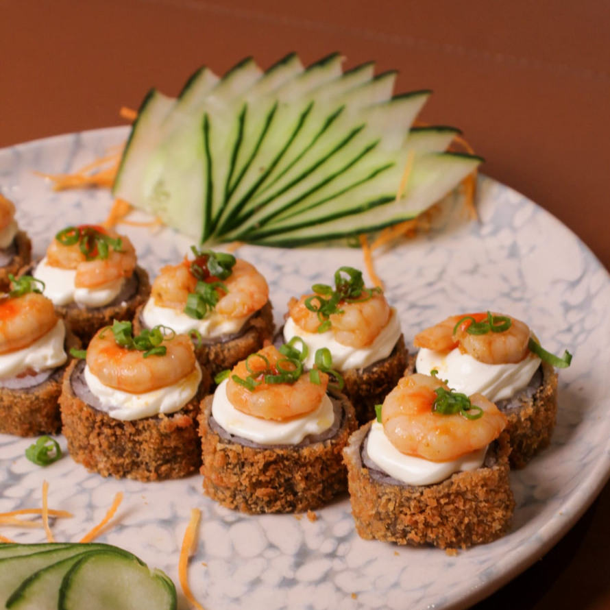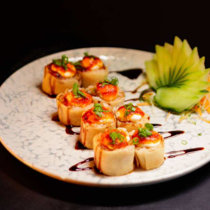 Arroz, Massa Harumaki, Salmão, Camarão e Creme Cheese