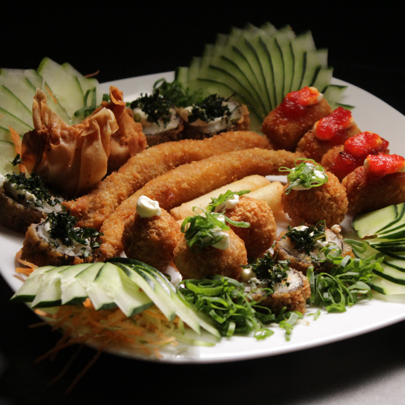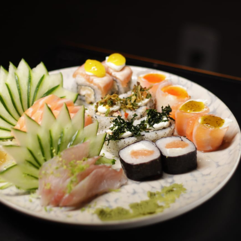 1Acaraje, 1FiledeTilapia, 3HotFiladelfia, 2Hotpicante/ 1CarpacciodeTilapia, 1Ceviche, 1Tataki, 1Sunomono/ 4SashimiSalmão, 4SashimiTilapia, 10SushisVariados, 2GunkanSalmão, 2GukanTilapia, 1NiguiriSalmão, 1Niguiri Skin Especial