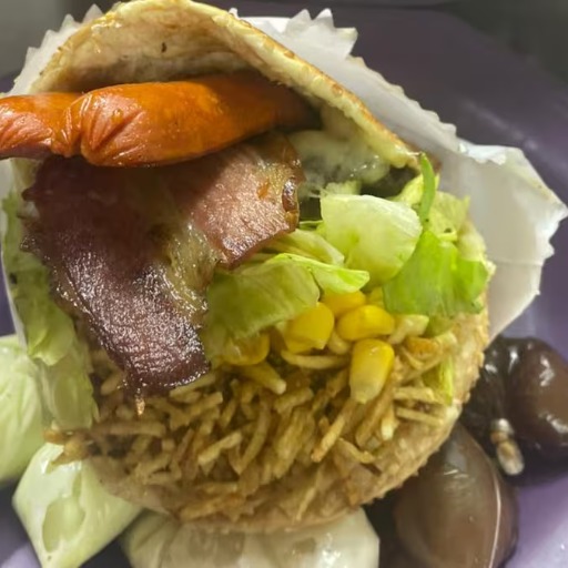 Pão carne 2 salsichas ,ovo ,queijo ,bacon ,presunto, alface e tomate