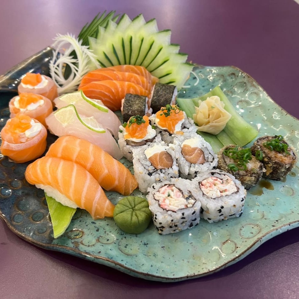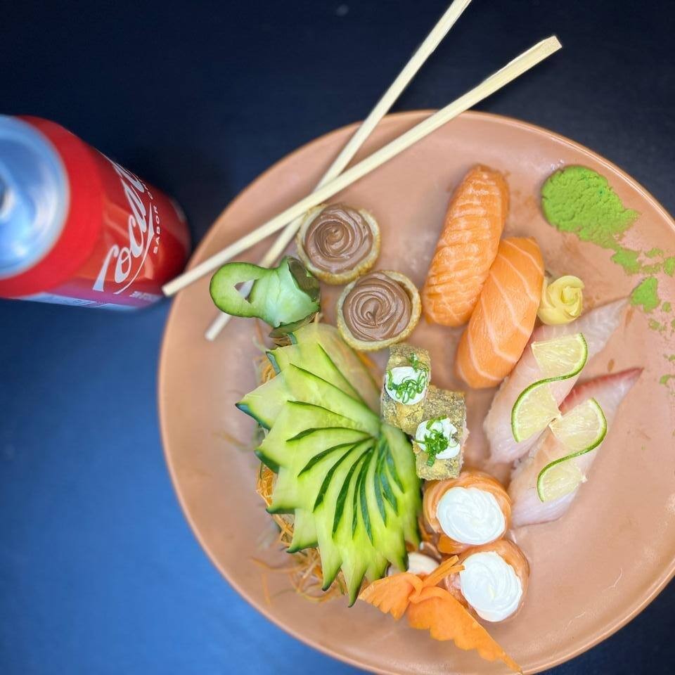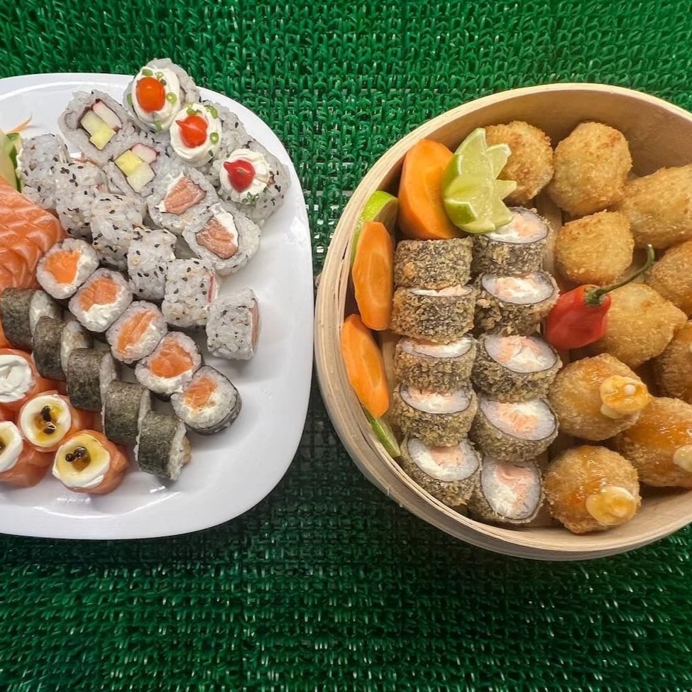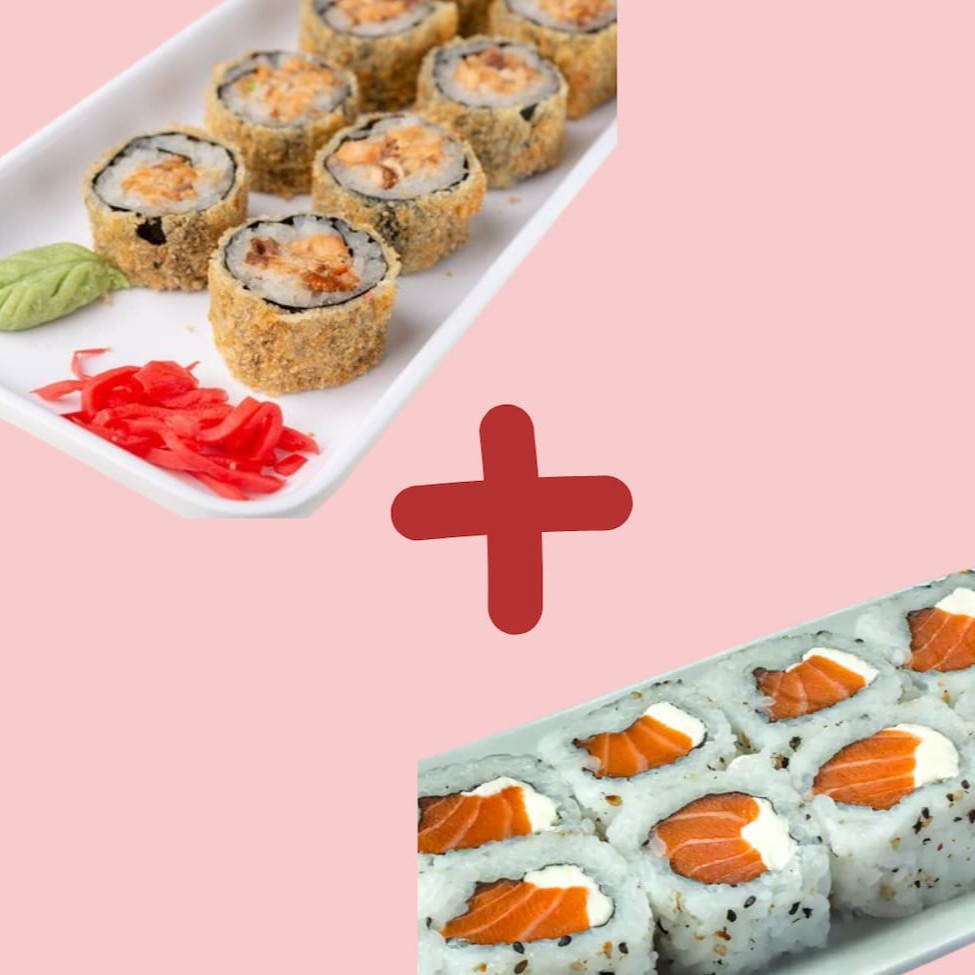 Delicie-se com o 'Ki-jápinha' da nossa categoria 'Combinhos Kikone'. Uma seleção harmoniosa que inclui: 2 Uramakis Especiais, meticulosamente preparados. 2 Hossomakis de Salmão. 2 Hossomakis de Pepino, proporcionando uma crocância refrescante. 2 2 Niguiris de Salmão, trazendo a suavidade e riqueza desse peixe nobre. 2 Niguiris Kani 2 Sobresesas de Goiabada e Queijo. 1 Refrigerante a escolha criando um equilíbrio perfeito entre doçura e sabor salgado. Um prato cheio de texturas e sabores para encantar o paladar.
