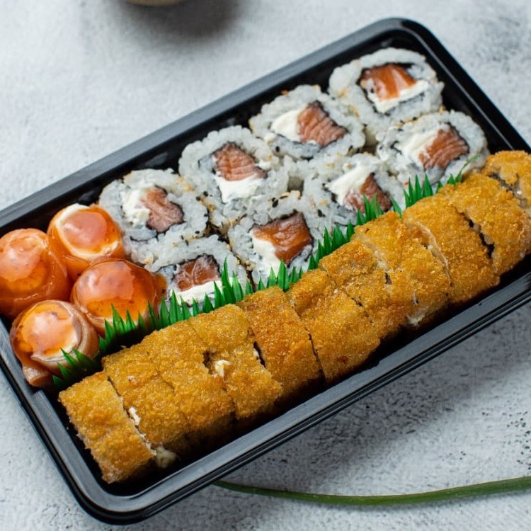 Esse delicioso e completo combo oferece: 10 hot Philadelphia 10 big croquete 10 hossomaki de salmão m 08 uramaki de salmão 02 uramaki Califórnia 03 uramaki de salmão picante 09 jyo 06 sashimi de salmão Acompanha 3 pares de hashi e 2 molhos shoyu 30ml.