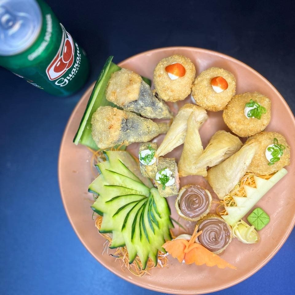 Descubra o prazer irresistível que o 'Ki-koninho' tem a oferecer. É composto por: 2 delicadas miniaturas de Temaki, 2 suculentos hot rolls, 2 bolinhos de salmão meticulosamente preparados, 2 croquetes crocantes e 2 irresistíveis Harumaki de queijo. 2 hot nana simples. E um refrescante refrigerante em lata de 350ml à sua escolha. É uma refeição que promete uma viagem gastronômica apaixonante.