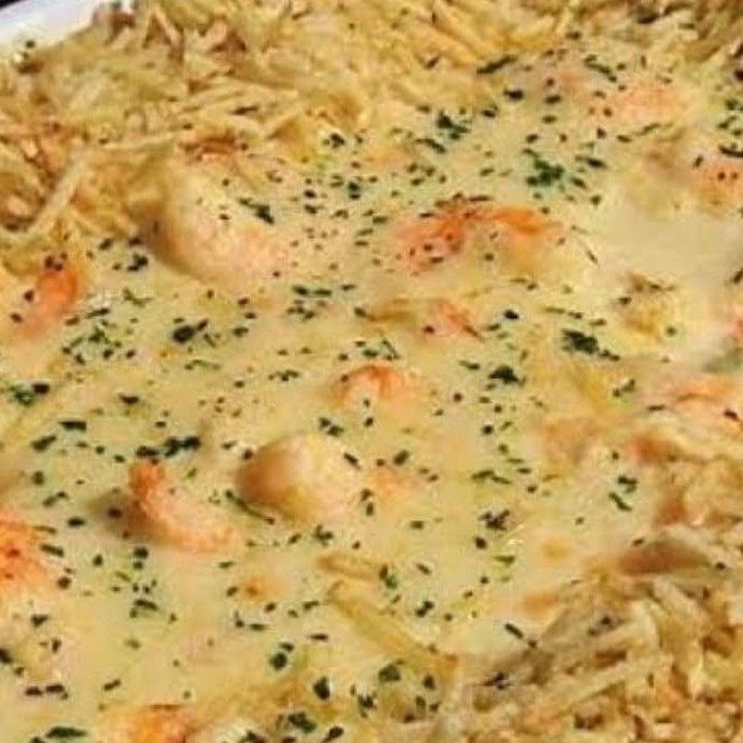 O 'Camarão Internacional' pertence à categoria de 'Pratos Quentes'. É um prato irresistível, que traz um arroz cremoso, perfeitamente cozido e envolvido por camarões tenros, proporcionando um sabor marítimo insuperável. Misturado a este arroz, encontramos ervilhas frescas e pedaços generosos de presunto, que adicionam uma textura singular ao prato. Isso tudo é banhado por um molho branco suave, que acentua os sabores sem ofuscar cada componente individual. A finalização é feita com uma camada crocante de queijo derretido e batata palha, que adiciona uma textura surpreendente. Uma verdadeira viagem internacional de sabores!