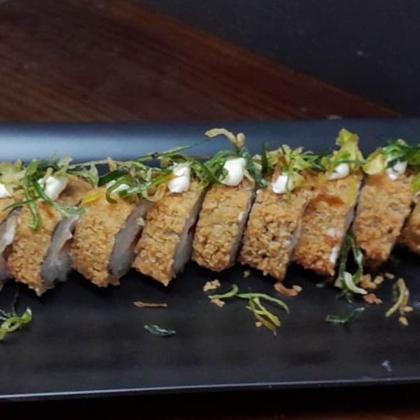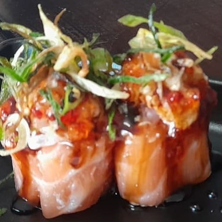 Emrolado com salmão ,peixe branco , camarão , creme chesse e finalizado com molho especial da casa