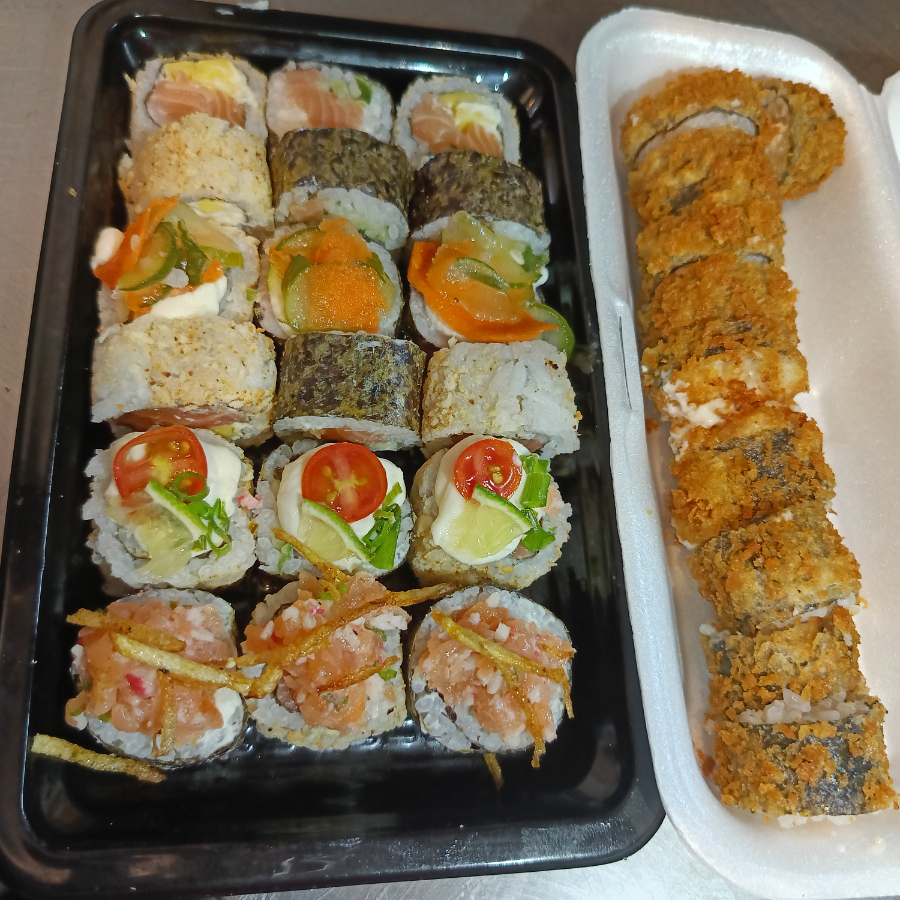 2 Poke 250 g ,10 hot patê salmão grelhado 10 hot especial 10 uramaki