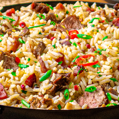 Arroz carreteiro tradicional, preparado com carnes nobres, temperos frescos e muito sabor. Caseiro, fartura e aquele gostinho de comida feita na hora.