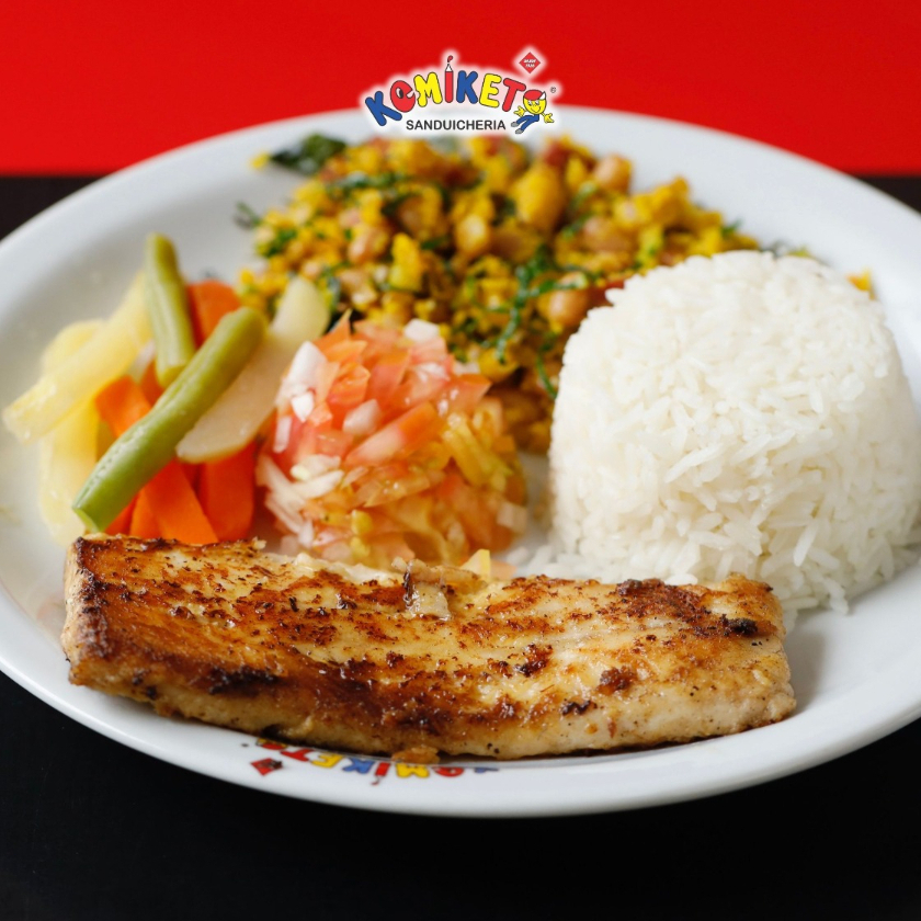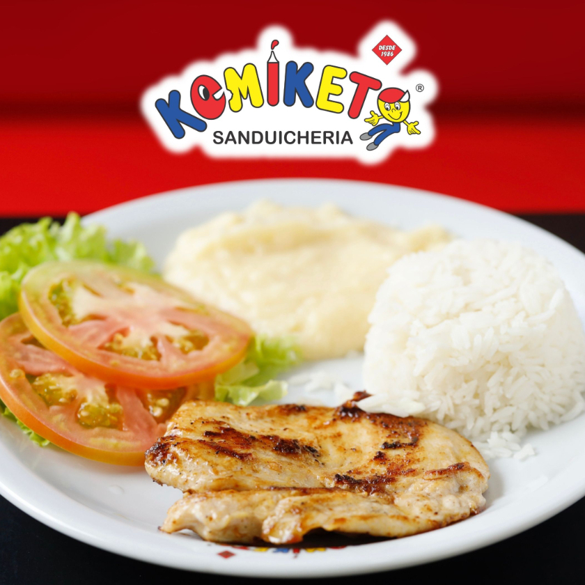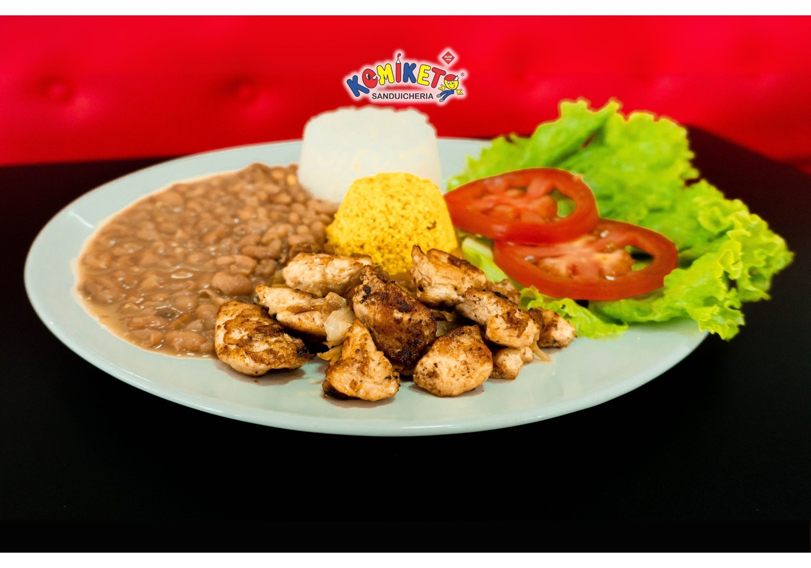 ARROZ, FILE DE FRANGO, PURÊ, TOMATE, ALFACE E COCA COLA LATA