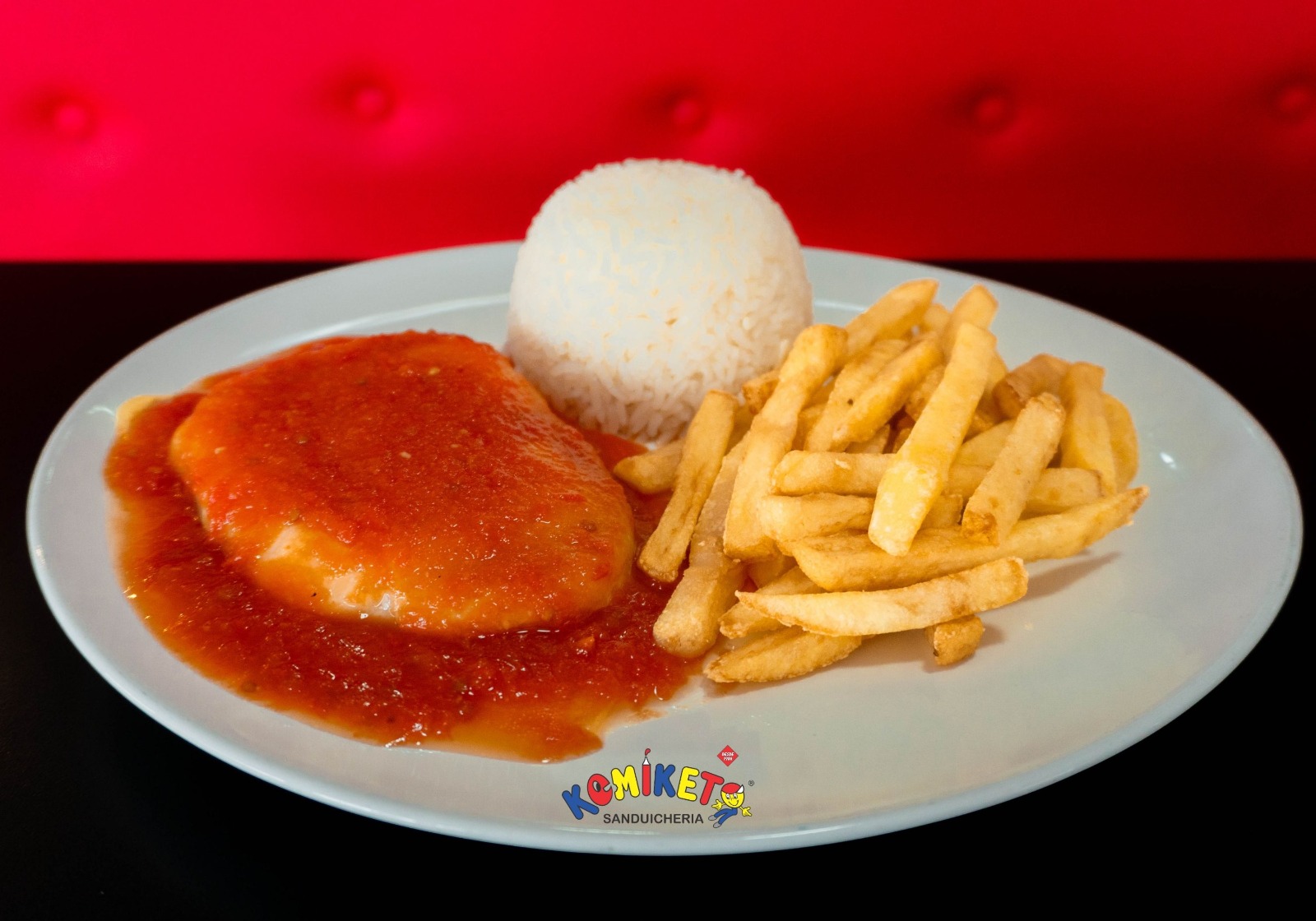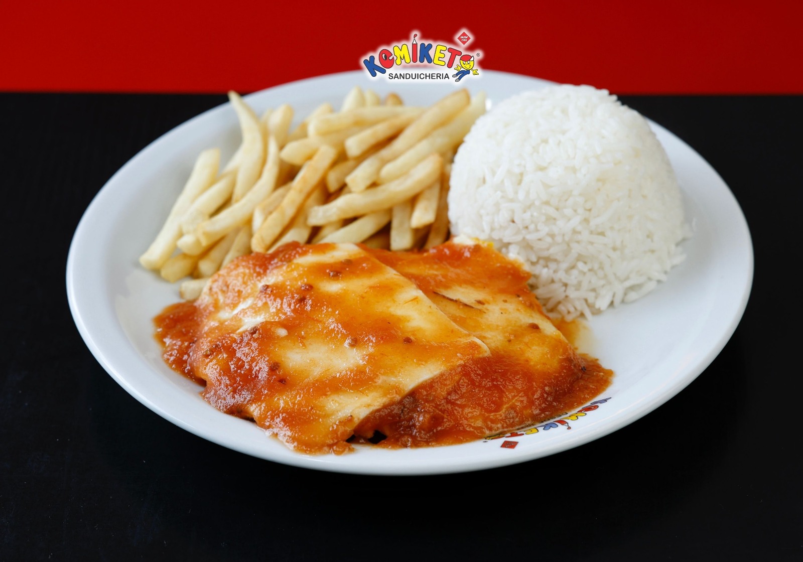 PRATO FILÉ DE FRANGO A PARMEGIANA ARROZ, BATATA FRITA