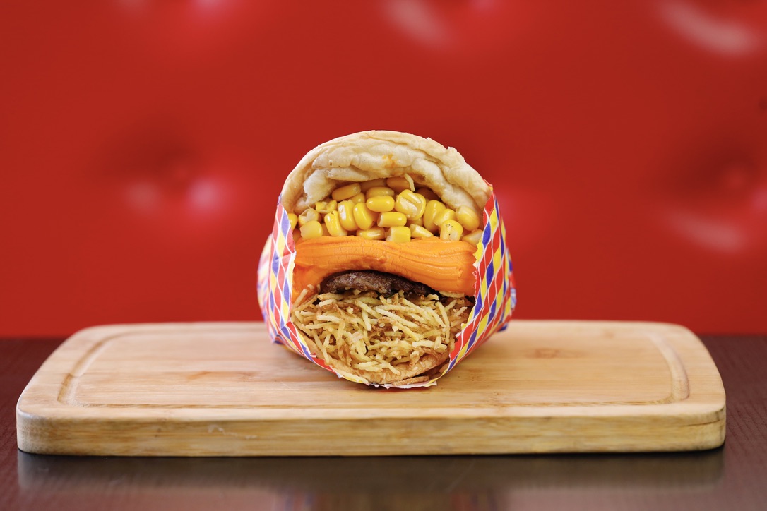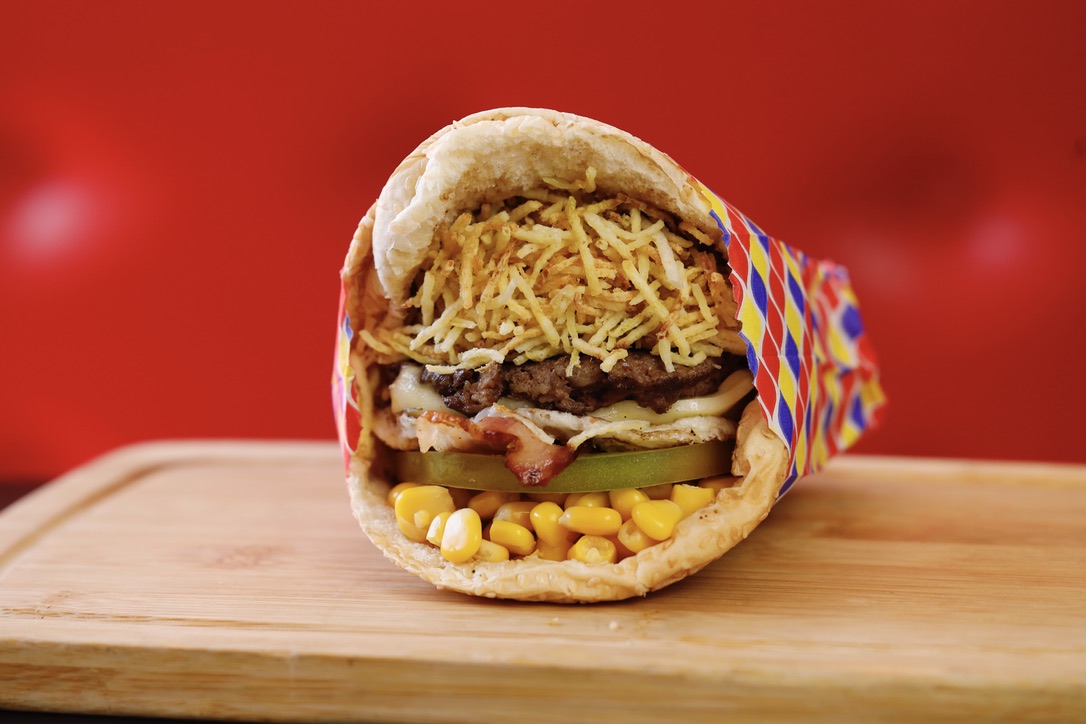 PÃO HAMB, MUSSARELA, ALFACE, OVO, BACON, TOMATE, MILHO E BATATA PALHA