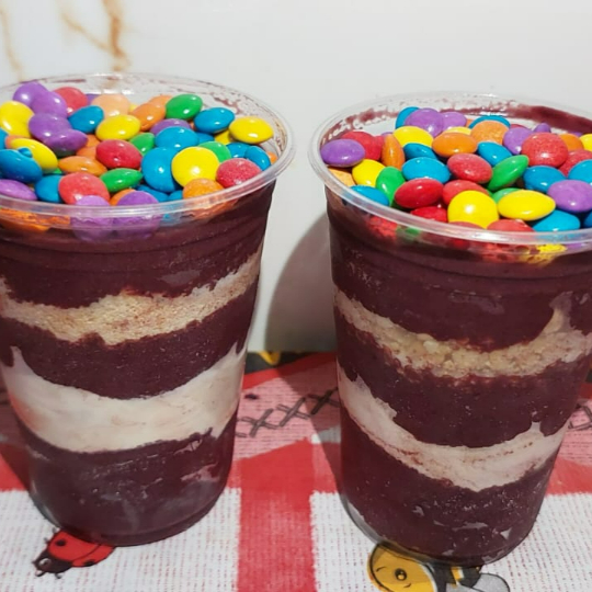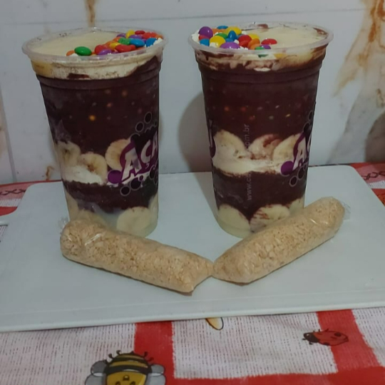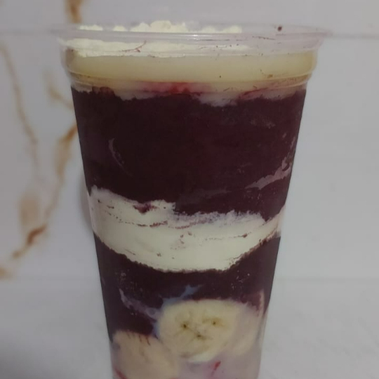 Um copo de açaí montado com duas camadas bem caprichadas de recheio de cremes à sua escolha (como Nutella, Creme de Ninho ou outros), leite em pó e duas frutas fresquinhas à sua escolha, tudo isso pra deixar o copo ainda mais completo e irresistível. Perfeito para quem ama um açaí bem servido, equilibrando cremosidade, frescor e muito sabor!
