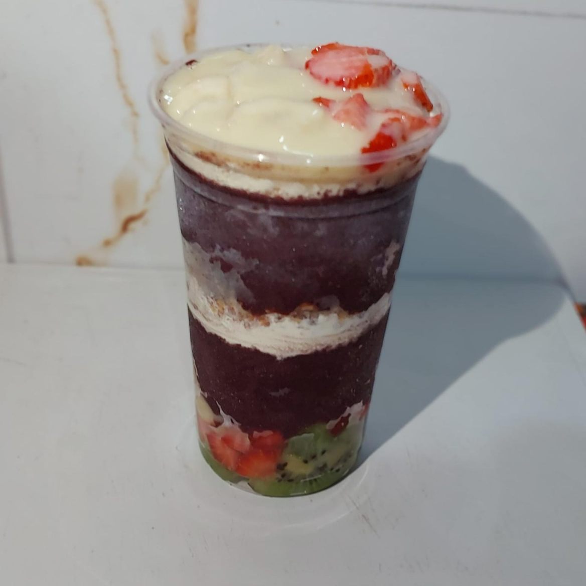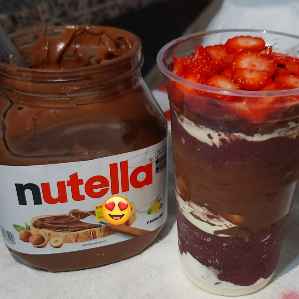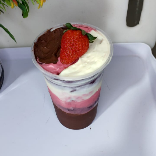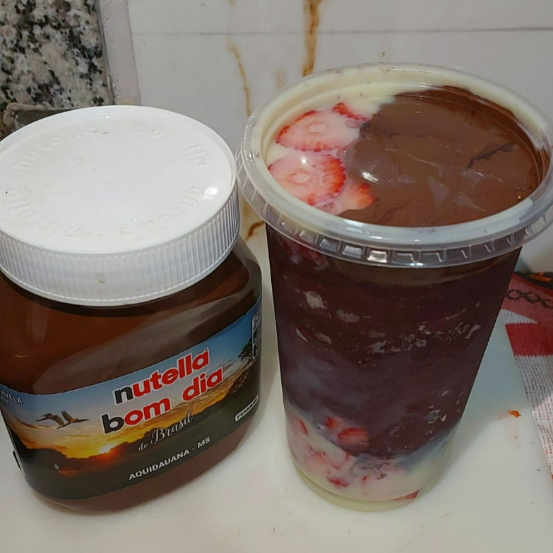 Novidade na loja! Copo especial com duas camadas de recheio bem caprichadas, divididas em três cremes irresistíveis: Nutella, Creme de Ninho e Creme de Morango. O cliente ainda escolhe duas frutas para completar essa explosão de sabor. Perfeito para quem ama variedade e cremosidade em cada colherada! 😍