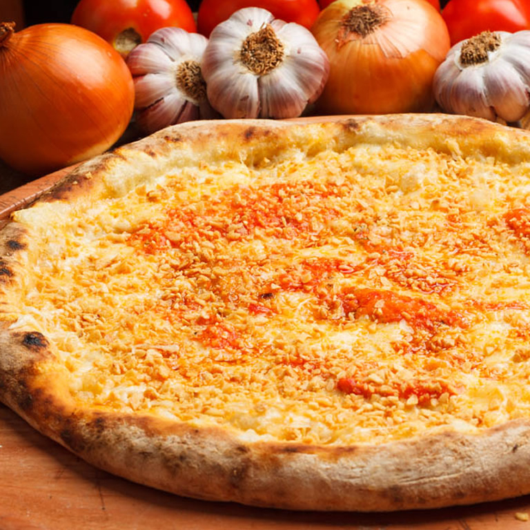 Molho de Tomate, Mussarela, Alho Frito