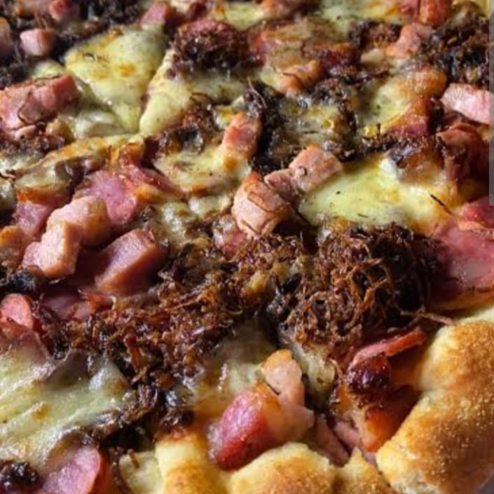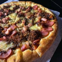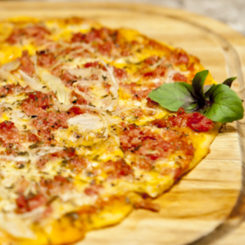 Molho de Tomate, Mussarela, Bacon Calabresa, Carne de Sol, Orégano