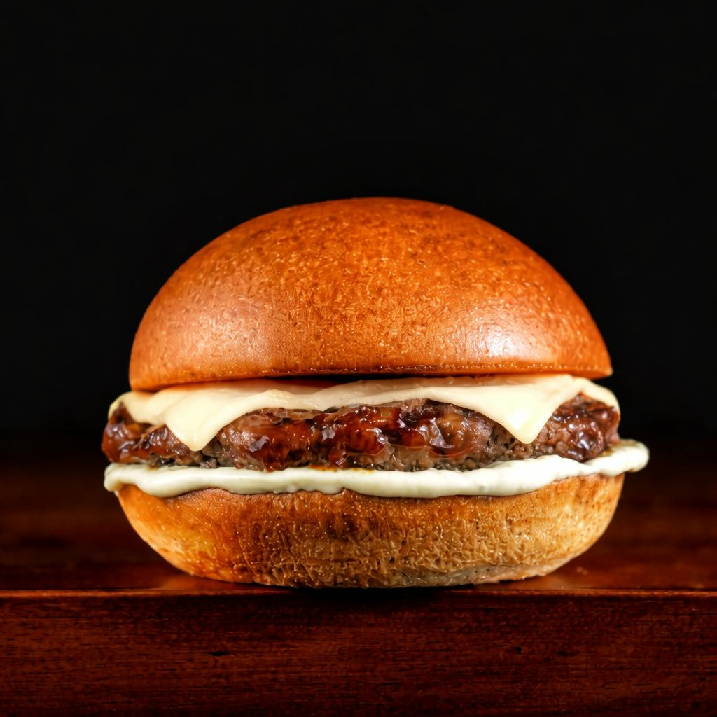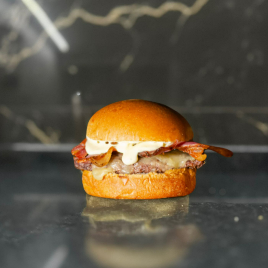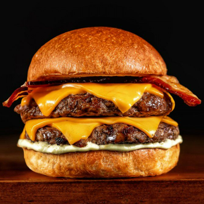 Pão, blend especial 75g, queijo mussarela, 2x bacon e molhos