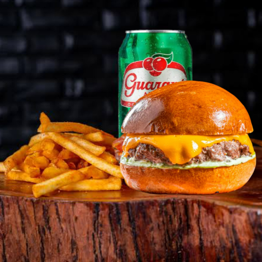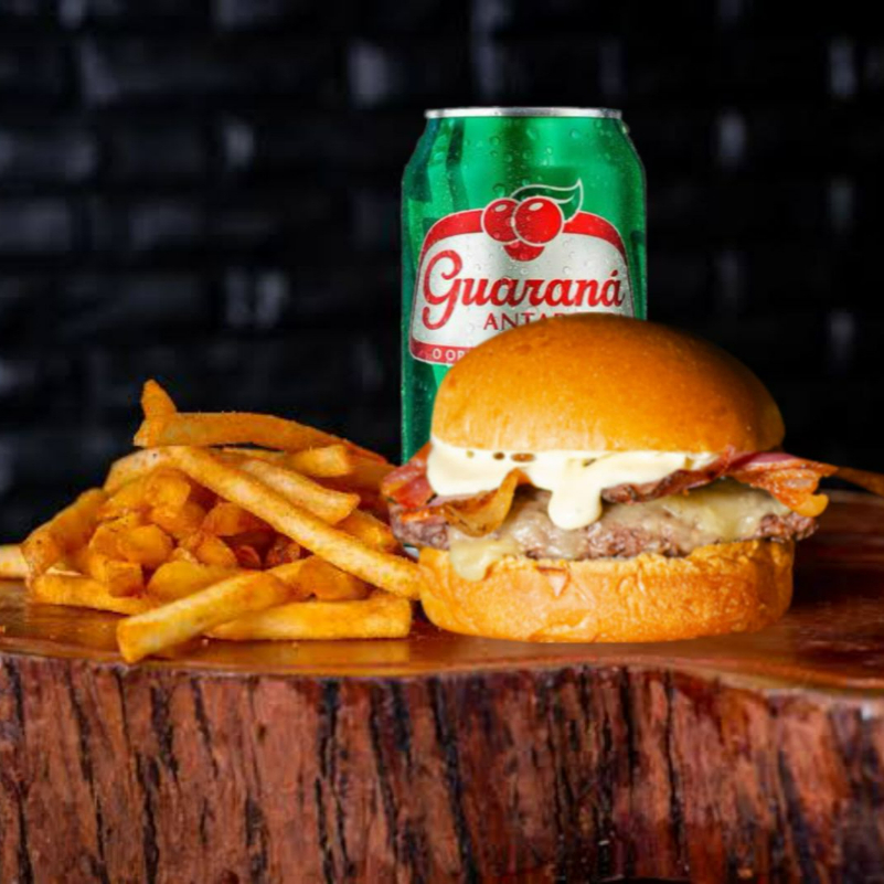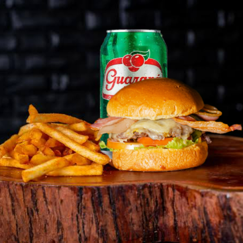 PAO , CARNE , BATATA FRITA 120G , GUARANA LATA