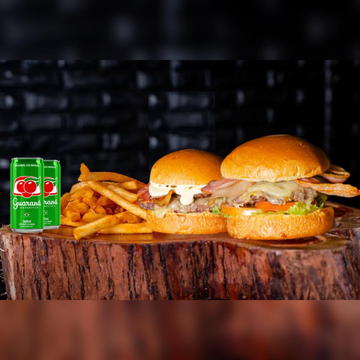 batata frita, 2 hamburguer, garana antartica 2 lats