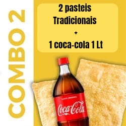 2 pastéis de presunto e queijo mussarela 1 coca cola 1 Lt