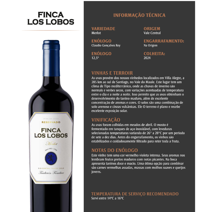 VINHO CHILENO FINCA LOS LOBOS 2024 MERLOT 750ML