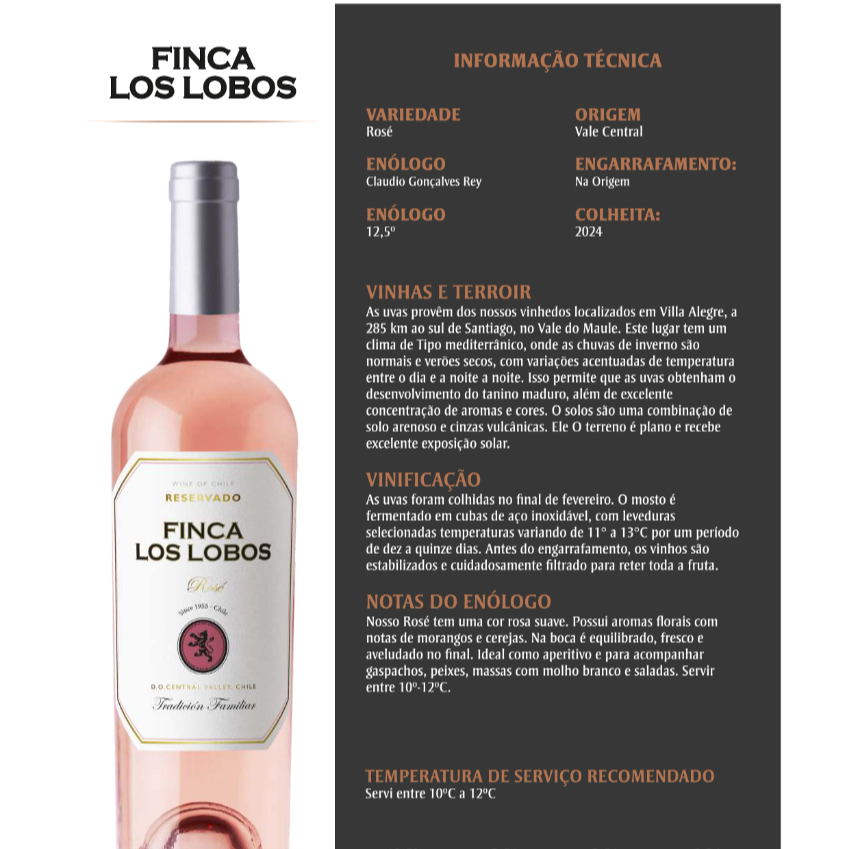 VINHO CHILENO FINCA LOS LOBOS 2024 ROSE 750ML