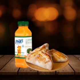 Combo Suco Prat's Laranja E Acerola E Duas Esfirras Grande De Carne