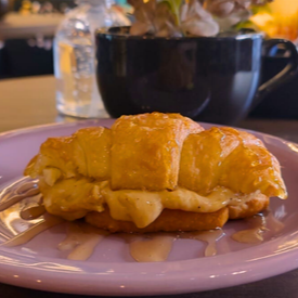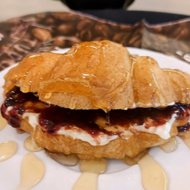 Croissant recheado com geleia e creme cheese - Finalizado com mel.