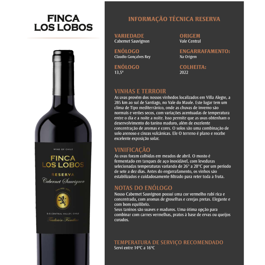VINHO CHILENO FINCA LOS LOBOS RESERVA CABERNET SAUVIGNON 750ML