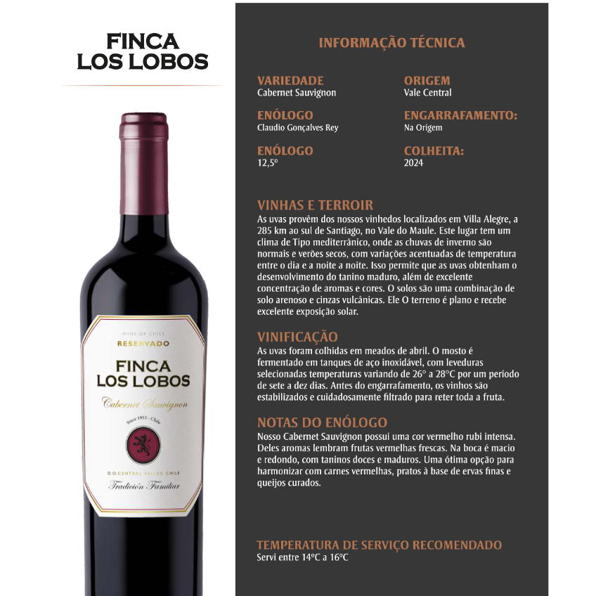 VINHO CHILENO FINCA LOS LOBOS 2024 CABERNET SAUVIGNON 750ML