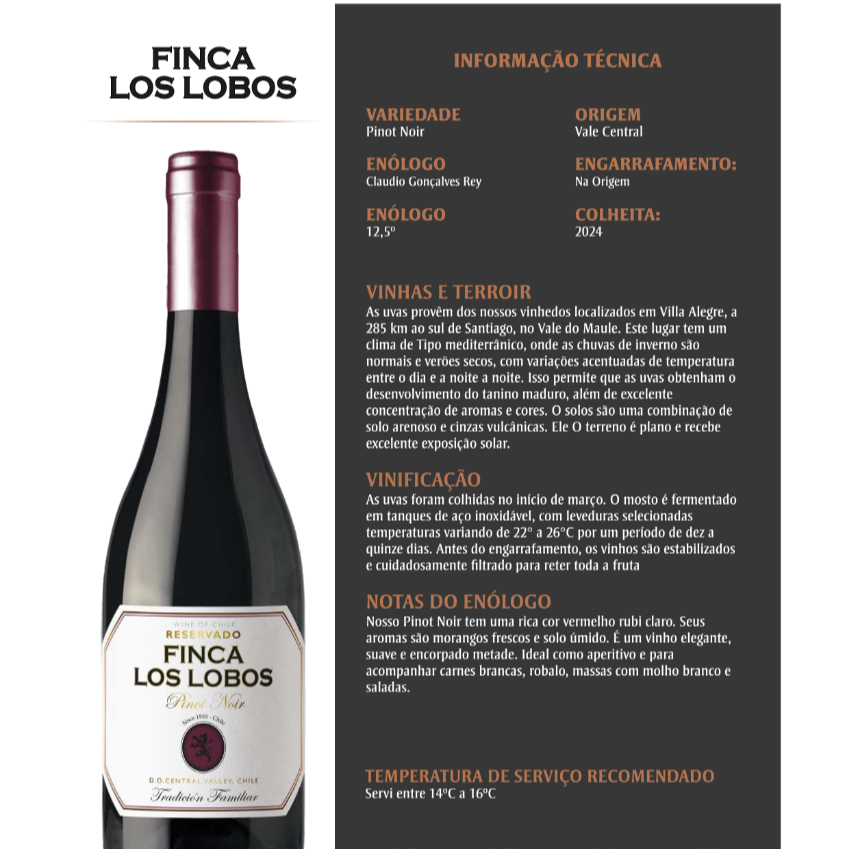 VINHO CHILENO FINCA LOS LOBOS 2024 PINOT NOIR 750ML