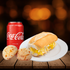Combo Pão Com Ovo Coca Cola 350ml E Pão De Queijo
