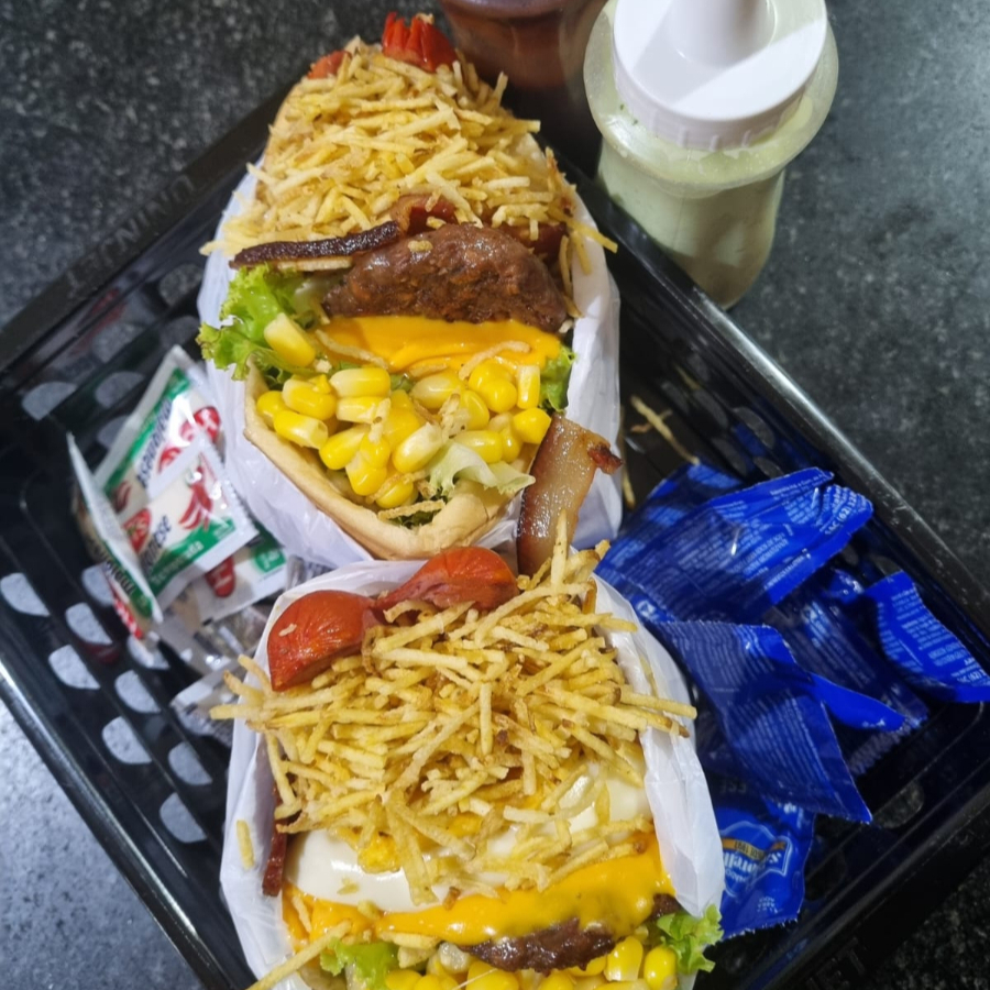O 'X Tudo' da categoria 'Sanduíches (1)' é uma experiência gastronômica única. Este sanduíche ostenta um pão fresquinho e crocante, recheado com uma generosa porção de carne suculenta, queijo derretido e presunto de alta qualidade. A salsicha, o ovo cuidadosamente frito e o bacon crocante adicionam uma profundidade de sabor irresistível. A combinação é enriquecida com o adocicado do milho, a crocâ