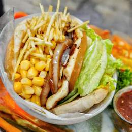 O 'X frango especial' é um sanduíche robusto e irresistível. Apresenta uma combinação perfeita de frango suculento e queijo derretido, envolvidos por fatias finas de presunto. Acrescentamos um toque especial com um ovo frito, agregando uma textura única ao prato. A adição de milho e batata oferece um sabor adocicado e terroso, enquanto a alface e o tomate trazem a frescura necessária para o equilí