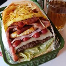 O X-Bacon Especial é um sanduíche digno de aplausos. Composto por um pão sempre fresquinho, é recheado com um suculento hambúrguer de alta qualidade. Acrescenta-se a isso uma generosa fatia de queijo derretido e presunto fatiado na hora, que prometem uma explosão de sabor a cada mordida. O bacon crocante é uma atração à parte, assim como o ovo perfeitamente preparado. Para os amantes de um toque a