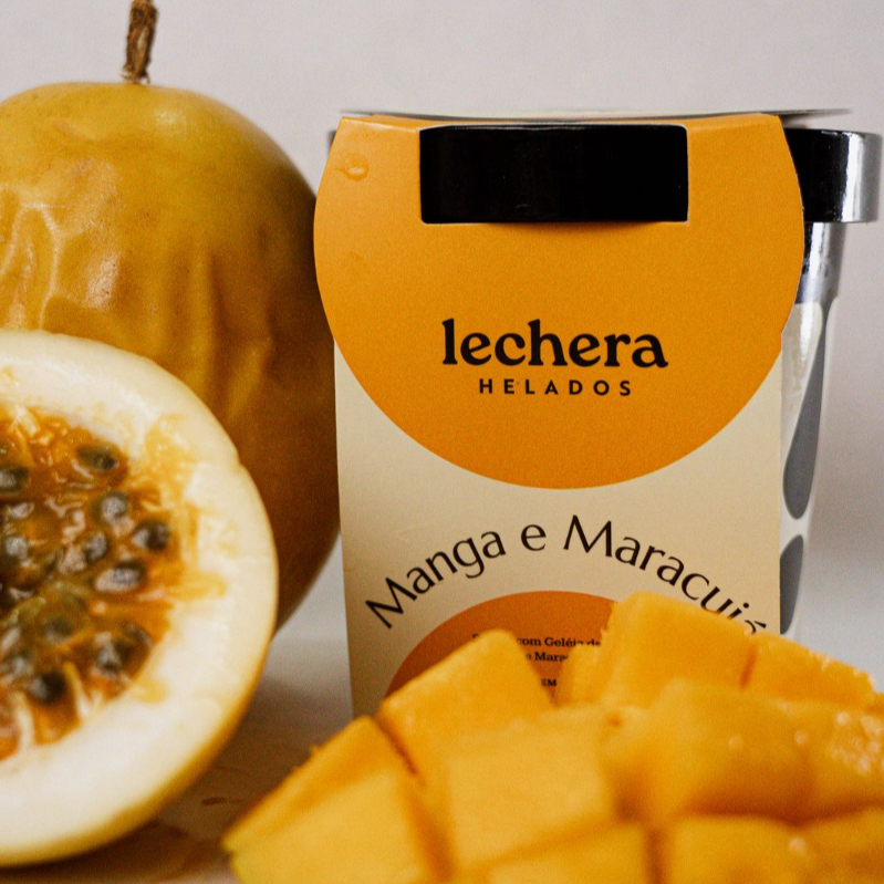 Sorvete de manga e maracujá mesclado com compota de manga e maracujá (sem adição de açúcar)