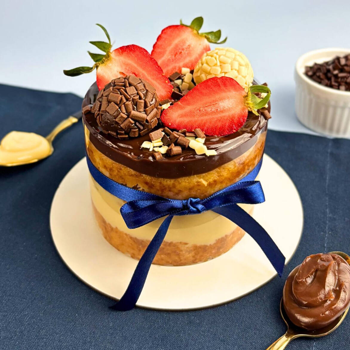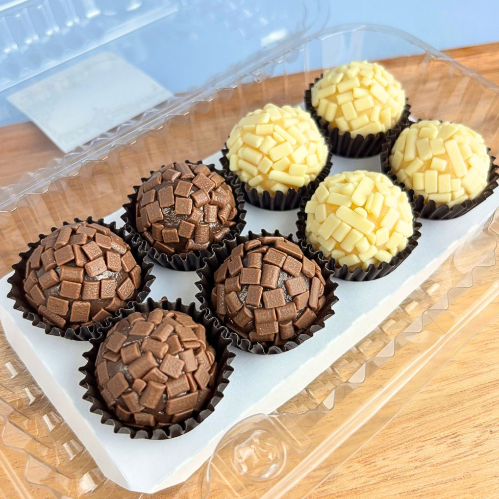 Camadas de creme branco bem cremoso combinadas com biscoito de maisena macio na medida certa e finalizadas com uma cobertura generosa de brigadeiro ao leite. Uma sobremesa clássica, acolhedora e cheia de sabor.