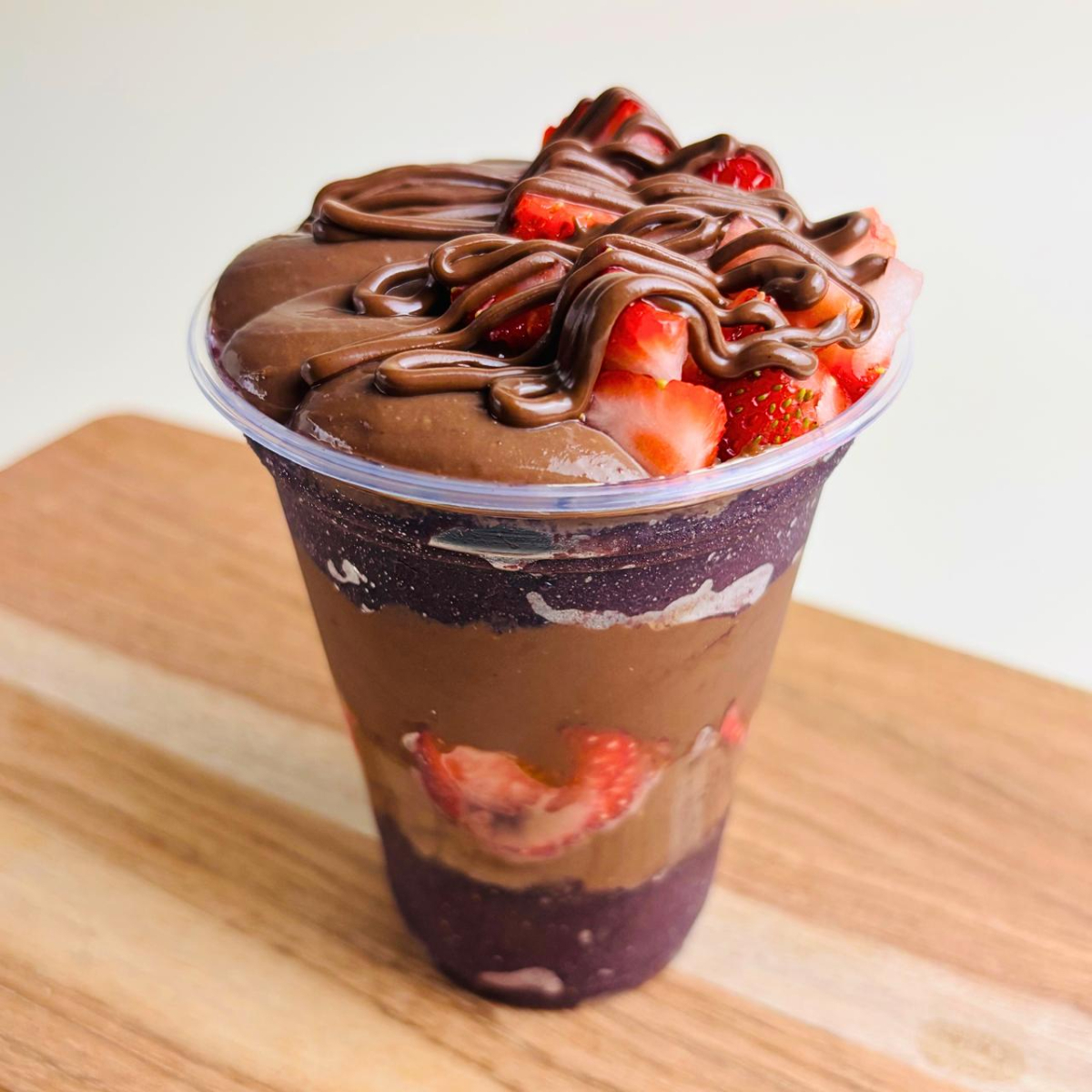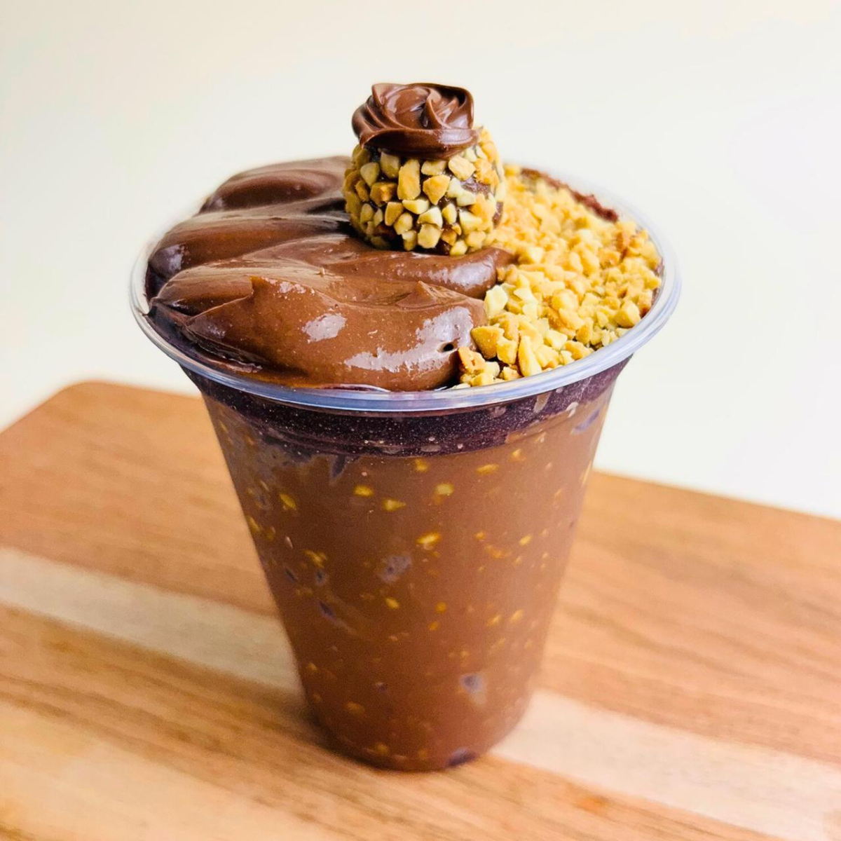 Sabor marcante e cheio de atitude. Açaí intenso acompanhado do copo Trufado de Brigadeiro de Nutella e Amendoim, recheado com camada de Amendoim, Brigadeiro e Nutella.