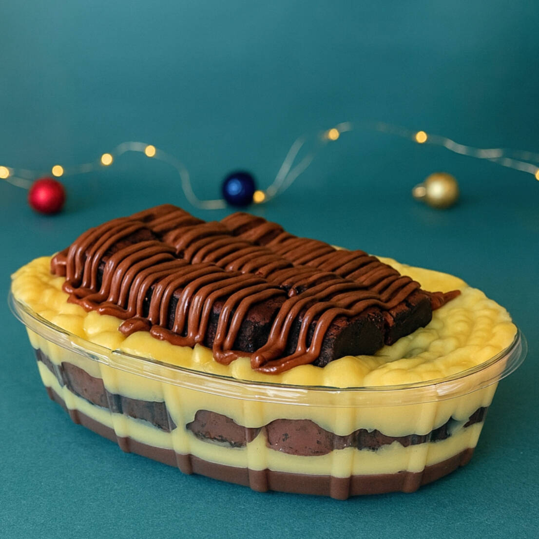 Preparada com camadas de mousse de maracujá leve e cremosa, pedaços de brownie macio e chocolatudo e brigadeiro ao leite bem cremoso, que traz equilíbrio à sobremesa. Cada colherada entrega contraste de texturas e sabores.