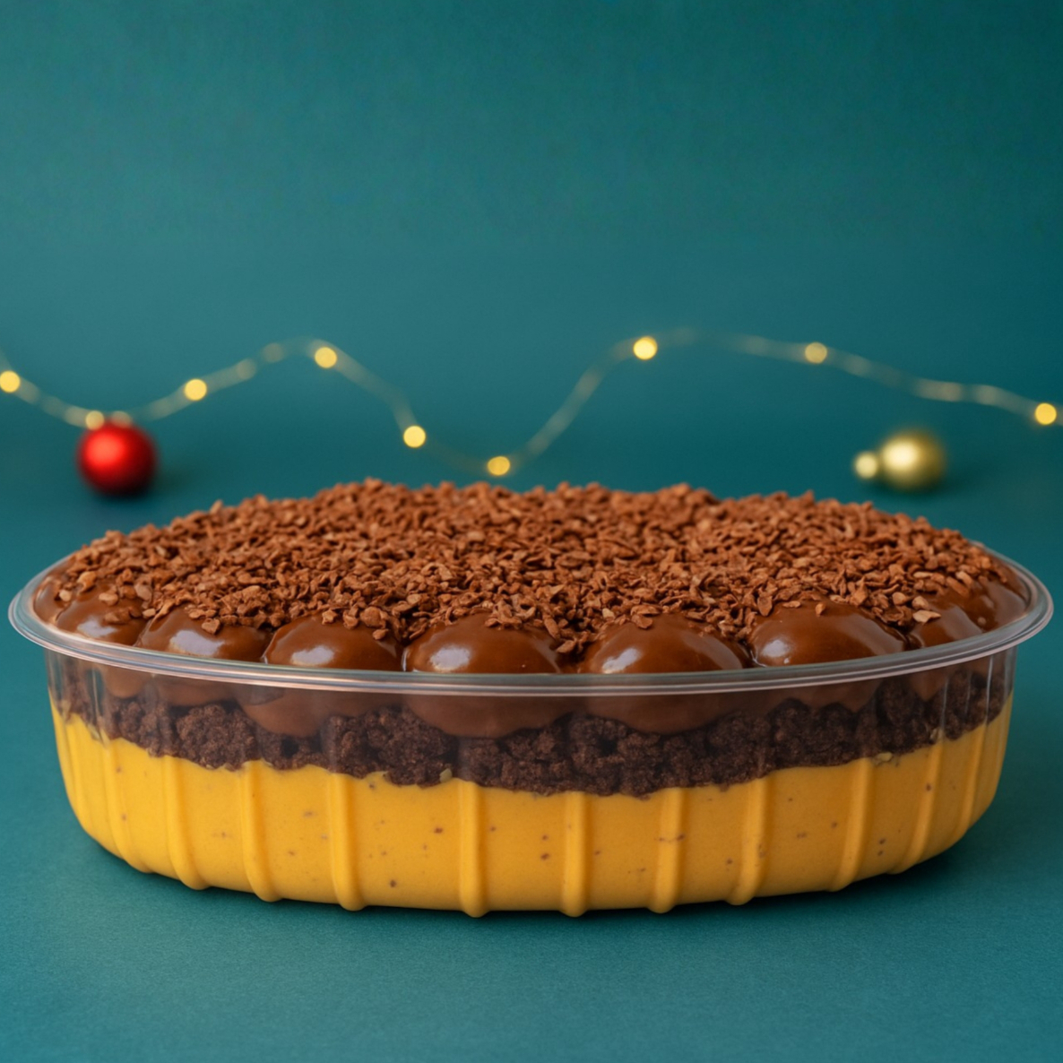 Nossa travessa de Pavê Ouro Branco é montada com camadas generosas de brigadeiro ao leite cremoso, brigadeiro branco aveludado, biscoito de maizena e bombom Ouro Branco picado, que traz aquele sabor inconfundível de chocolate com recheio crocante. A finalização é feita com uma camada leve de chantininho, deixando a sobremesa ainda mais equilibrada e cremosa.