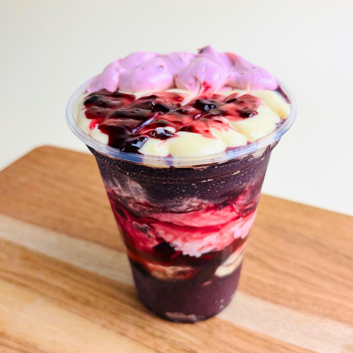 Elegante, sofisticado e poderoso. Açaí de sabor intenso acompanhado de Geléia e Mousse de Cereja Amarena e nosso Brigadeiro Branco artesanal.