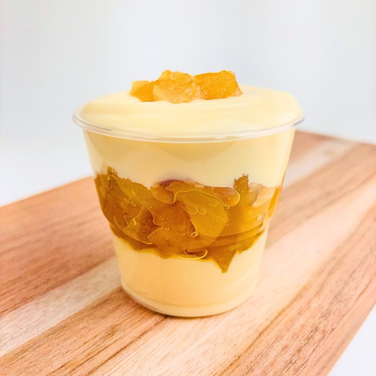 Uma explosão tropical de sabor em cada colherada! Massa branca macia e molhadinha com um recheio generoso de creme branco e pedacinhos de abacaxi cozidos no ponto certo. É a sobremesa perfeita para quem ama o contraste do doce e do cítrico! Serve 1 pessoa