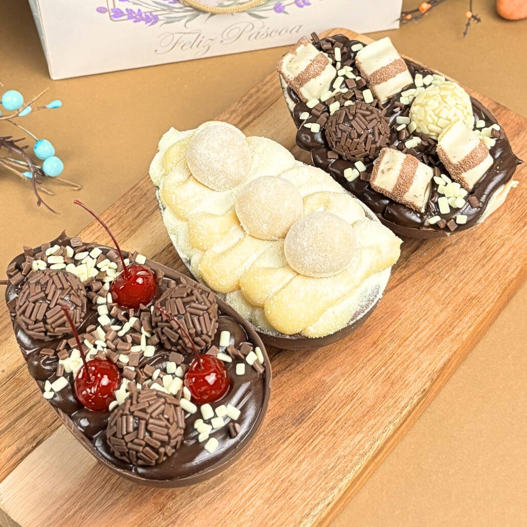 Ovos de Páscoa artesanais feitos com chocolate nobre, garantindo uma casca saborosa e de alta qualidade. Recheios super cremosos feitos com ingredientes selecionados. Perfeitos para adoçar seu momento ou presentear alguém especial! *Acompanha caixa de presente. *Peso aprox. 200g cada ovo (600g total)