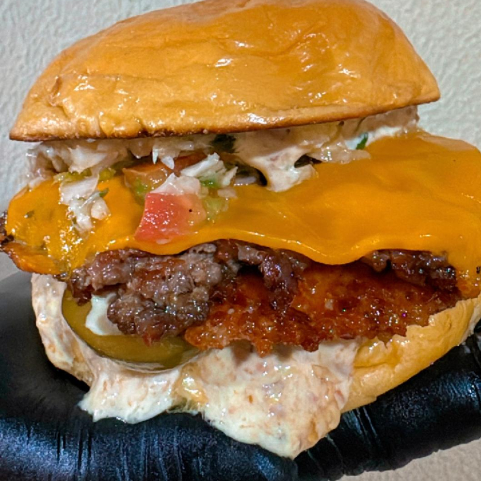 Um esplêndido Smash Burger com dois suculentos smash de 80g cada, perfeitamente selados e inseridos em um pão brioche. Para complementar, um queijo mussarela empanado crocante, duas fatias generosas de cheddar, cebola roxa, alface e tomate dão um toque de explosão de sabor. Para finalizar, nosso exclusivo molho da casa faz esse smash ser uma verdadeira obra-prima entre os Smash e Burger!