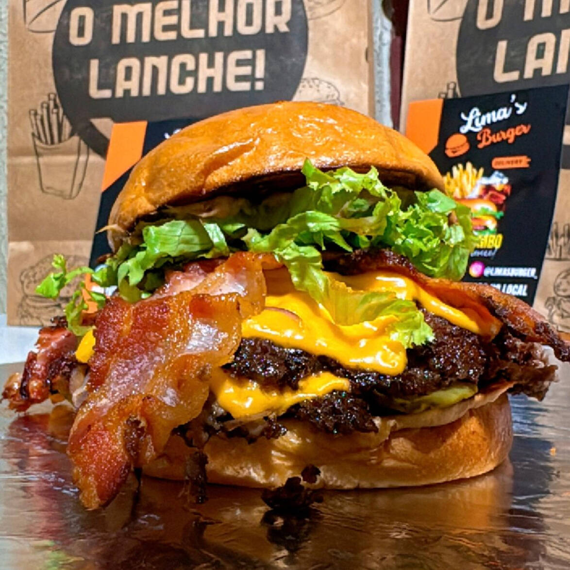 Delicie-se com o nosso 'Jalapeño Bacon Smash Burger. Uma Exclusividade Limas Burger. Composto por um suculento e macio pão brioche, bacon caramelizado, acrescido de um toque picante da pimenta Jalapeño. Leva dois Smash Burgers de 90g cada, duas fatias de cheddar derretido, cebola roxa, picles, tomate e alface. Para finalizar, nosso molho de baconese confere um toque especial e único a essa delícia