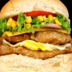 Pão, hamburguer, mussarela, ovo, alface, tomate e milho ( somente katchup)