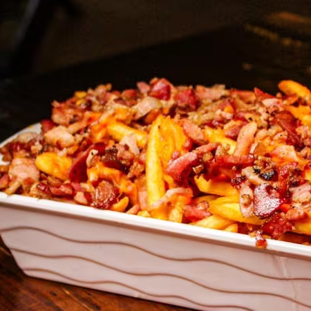 Dois Burgers Liverpool com Hambúrguer 180g, Muçarela, Bacon, Cebola Crispy, Barbecue e Molho da Casa. Dobrando o Sabor do Queridinho da Casa!