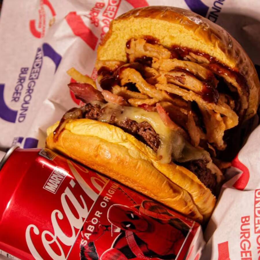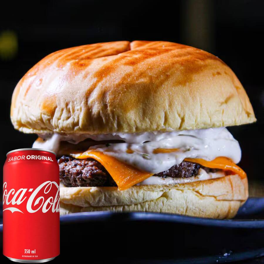 Hambúrguer 100g Suculento, Queijo Derretido e Molho da Casa no Pão Macio. Acompanhado de Coca-Cola Original 350ml Bem Gelada. Combo Certo Pra Matar A Fome Sem Pensar Duas Vezes!
