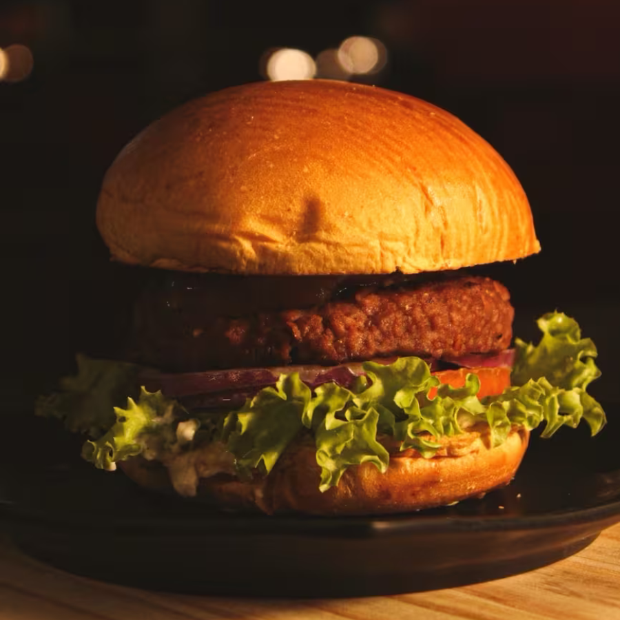 Futuro Burger 2.0, Muçarela, Geleia de Pimenta, Vegetais Frescos e Molho da Casa. 100% Vegetal, 200% Delícia!