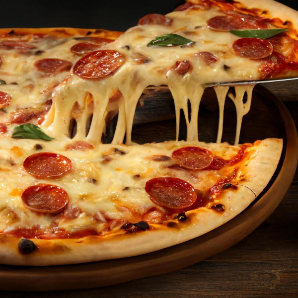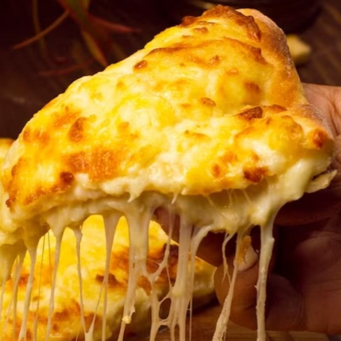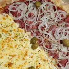 Massa Artesanal, Molho de Tomate feito na Casa, Muçarela, Catupiry, Parmesão, Gorgonzola e Orégano (sem cebola). Para quem Ama Queijo!!!